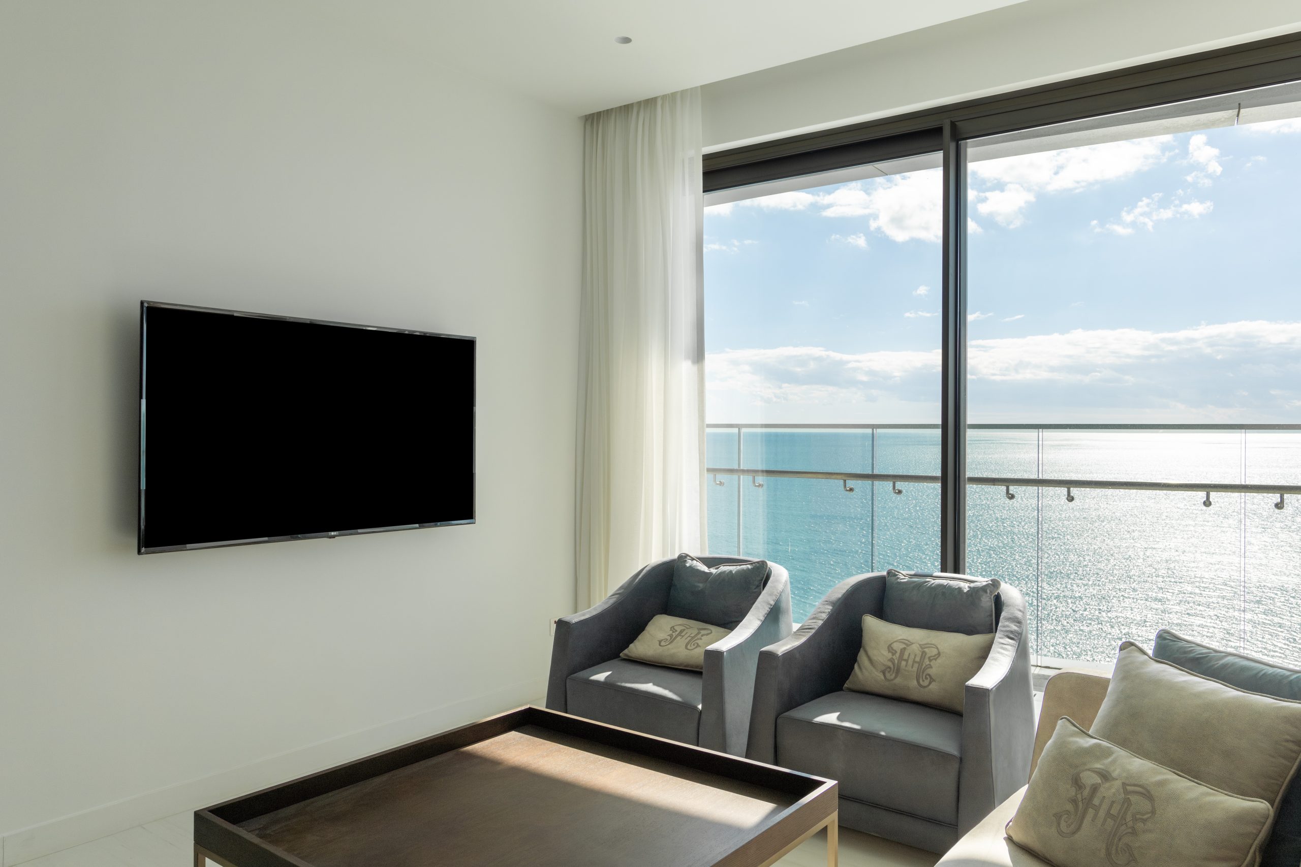is a Seafront apartment that enjoys breathtaking views of the Mediterranean Sea at every angle. Being part of Limassol Del Mar, it expresses the island's 'new wave' of architecture through its unique high-rise curvilinear design, which fully capitalizes on the plot's 170 metres long sea frontage.