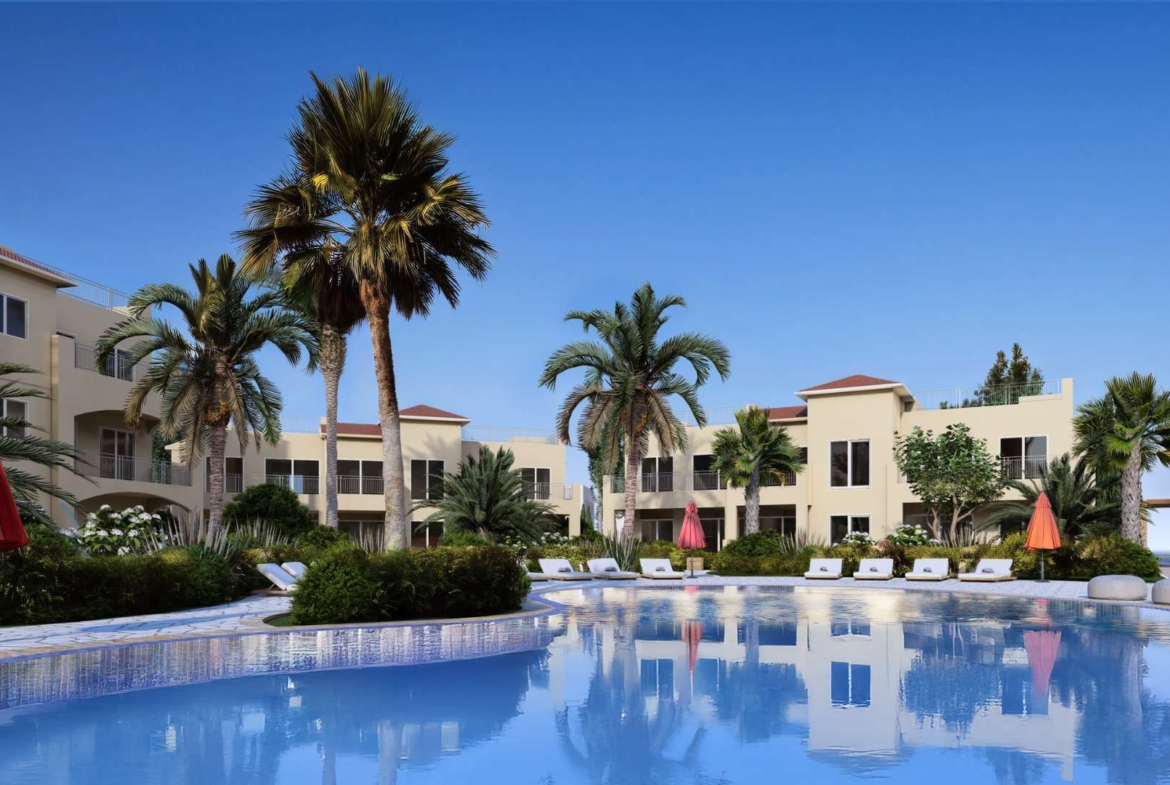 is located in an exceptional seafront development that offers one and two-bedroom apartments and penthouses, and three-bedroom detached villas. There are two communal swimming pools (one of which is heated during the winter months), set in beautiful and spacious landscaped gardens. The project also features a private clubhouse for residential use.