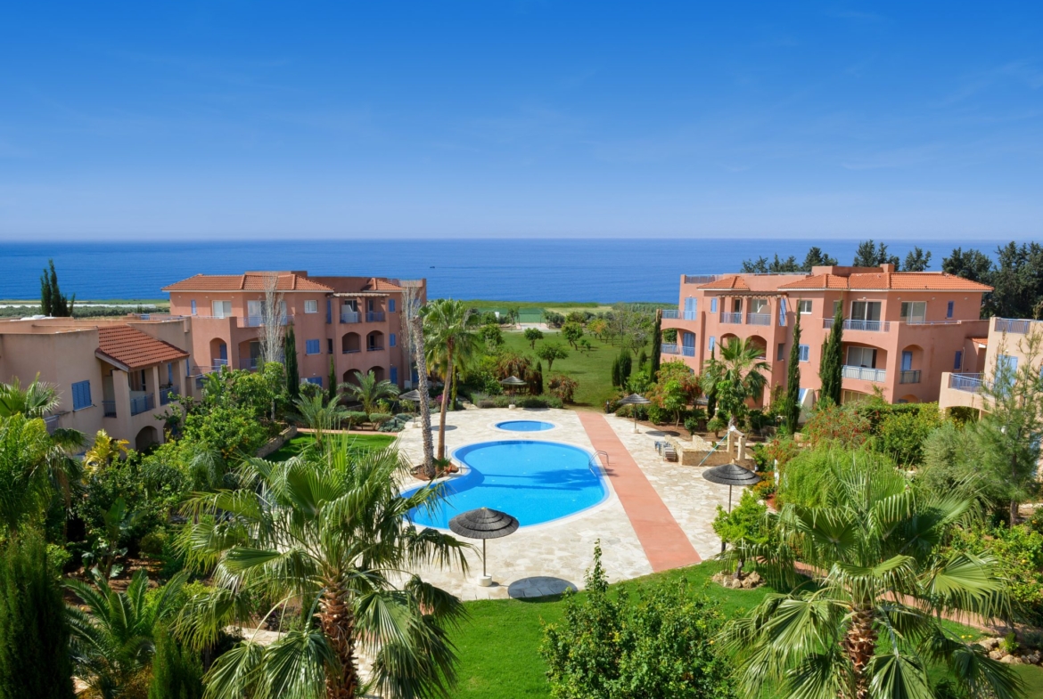 is located in an exceptional seafront development that offers one and two-bedroom apartments and penthouses, and three-bedroom detached villas. There are two communal swimming pools (one of which is heated during the winter months), set in beautiful and spacious landscaped gardens. The project also features a private clubhouse for residential use.
