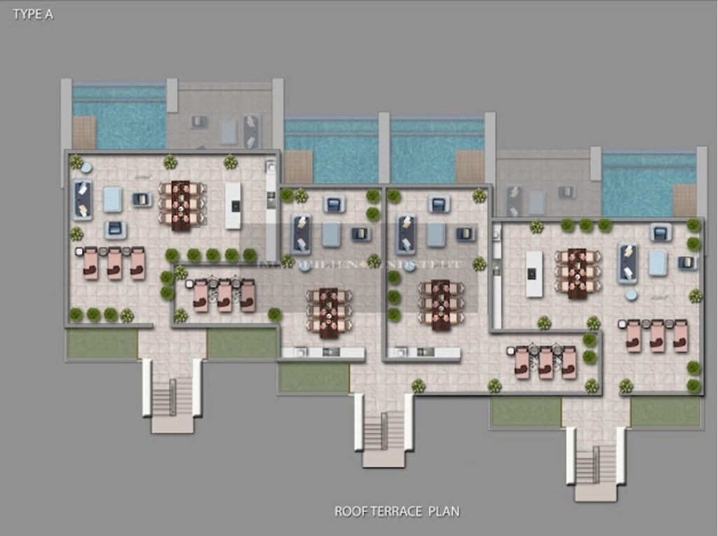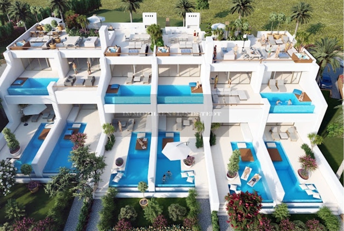 We present these modern units with 113m² of living space (216m² in total), which are distributed over 4 rooms, including 3 bedrooms. The spacious outdoor areas are the highlight of these properties. They have a huge terrace area with a private pool and a private roof terrace. Your open living room, so to speak.