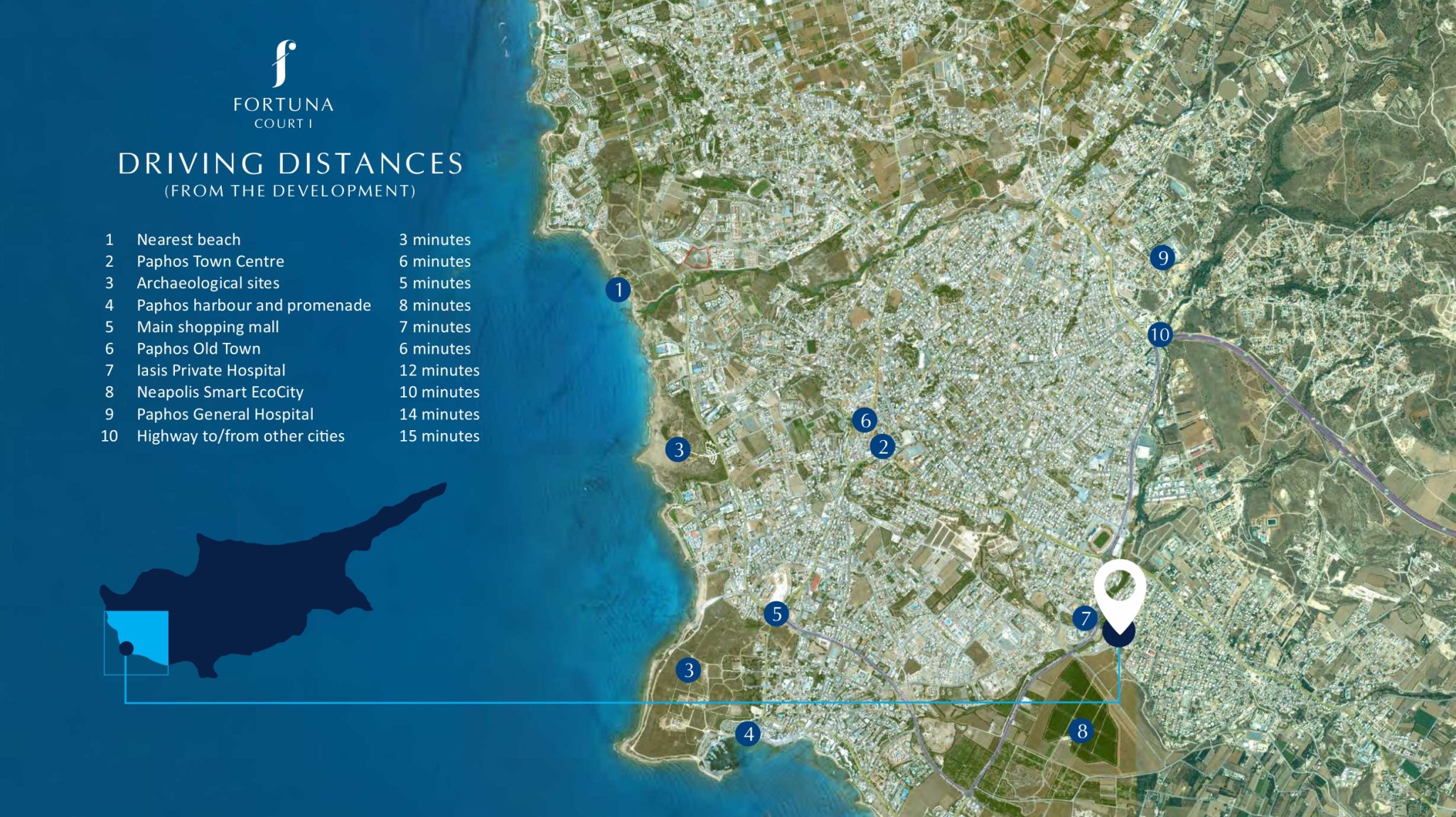 is part of an upscale residential complex situated near Geroskipou in Paphos, Cyprus. Comprising a selection of luxurious 2-bedroom and 3-bedroom apartments, this exclusive development offers a truly remarkable living experience. Immerse yourself in the exquisite landscaped gardens and take a refreshing dip in the communal swimming pools, designed to provide a tranquil haven for all residents. With its prime location in close proximity to essential amenities, facilities, and services, Fortuna Court I presents an exceptional investment opportunity. In addition, Fortuna Court I enjoys the advantage of being conveniently located less than a 20-minute drive from Paphos International Airport.