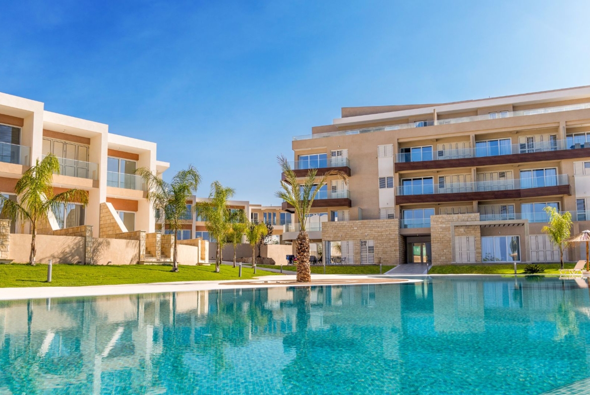 is located within a unique residential resort, just a short walk from the Paphos coastline and the blue waters of the Mediterranean Sea. These hilltop homes in Chloraka have a relaxing contemporary design with distinct Mediterranean features. All living areas have direct access to large verandas, terraces and gardens which surround the properties. All interior designs allow the sun and air to flow through.