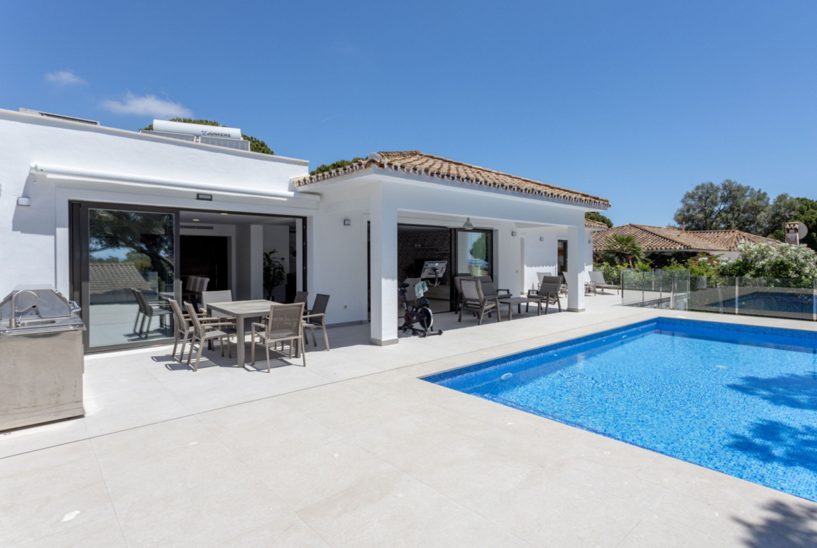 Entdecken Sie diese erfrischende mediterrane Villa mit Meerblick, eingebettet zwischen Pinienbäumen, nur wenige Schritte vom Yachthafen von Cabopino und den Dünen von Artola entfernt. Das Anwesen wurde komplett renoviert und im Februar 2023 in einem zeitgenössischen Stil fertiggestellt. Stil mit einem offenen und hellen Layout, um das Leben im Freien das ganze Jahr über zu genießen.